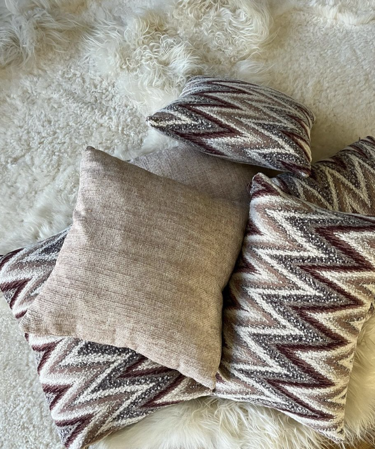 This cushion brings dynamic texture to any space. Crafted from plush, woven fabric in deep burgundy, warm taupe, and creamy ivory, its chevron motif recalls vintage upholstery with a modern twist. Perfect for layering, lounging, or simply admiring, this cushion invites touch and tells a tactile tale — where bold lines meet cozy calm. Pair with neutral tones or maximalist prints for a living space that speaks in pattern and poise.